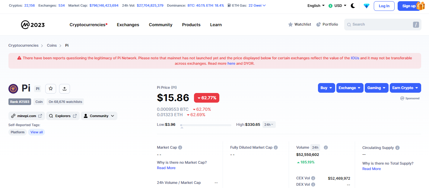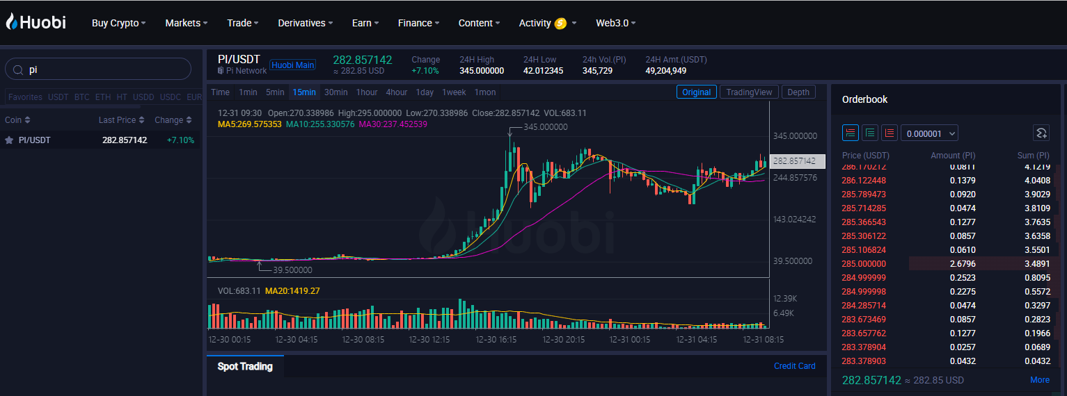 PI(파이코인)는 아직 메인넷이 폐쇄넷이라 외부(지갑)에서 거래가 불가능하고, 파이재단에서도 상장을 중요하게 서두르지 않겠다는 공지가 있었음에도....아래처럼 후오비글로벌을 비롯하여 코인마켓캡 등 거래소에서 협의도 없이 임의 도둑(?)상장을 해 버렸네요.